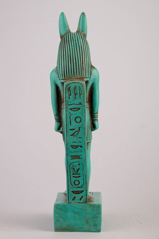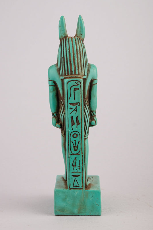 A unique ancient Egyptian statue of Anubis Jackal standing with jackal head and human body - Handmade in Egypt
