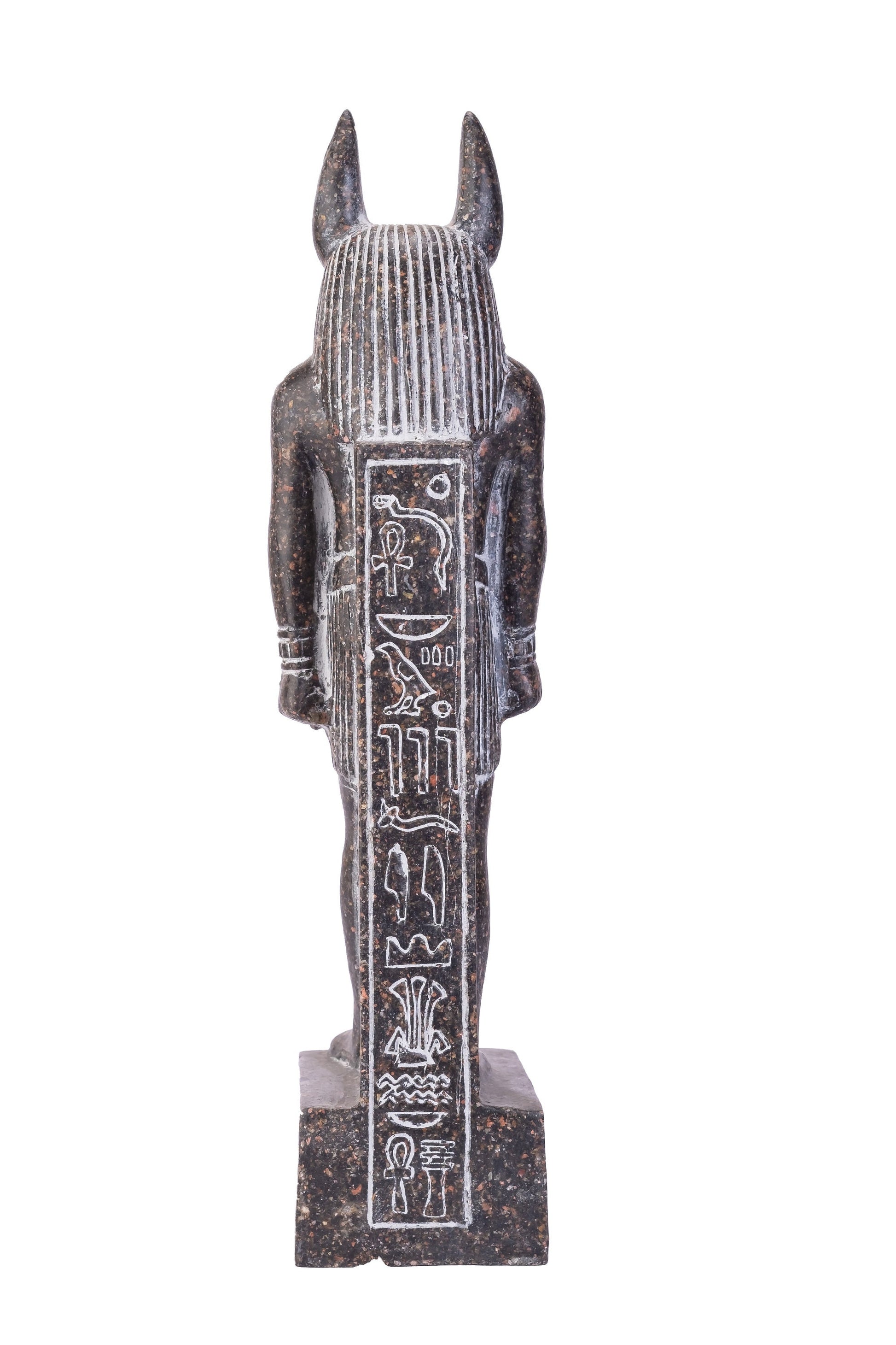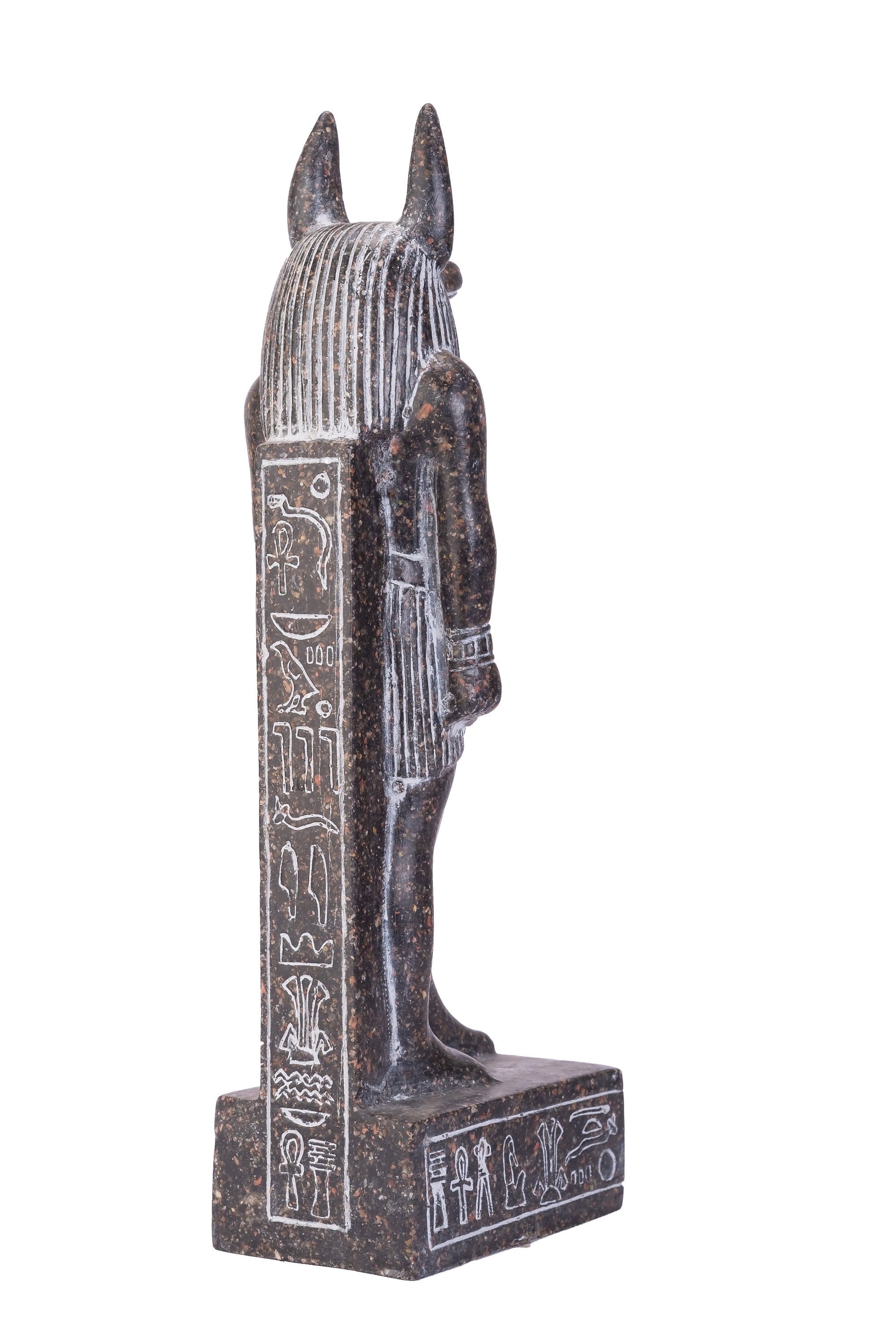 A unique ancient Egyptian statue of Anubis Jackal God of afterlife and mummification standing with jackal head and human body - Handmade