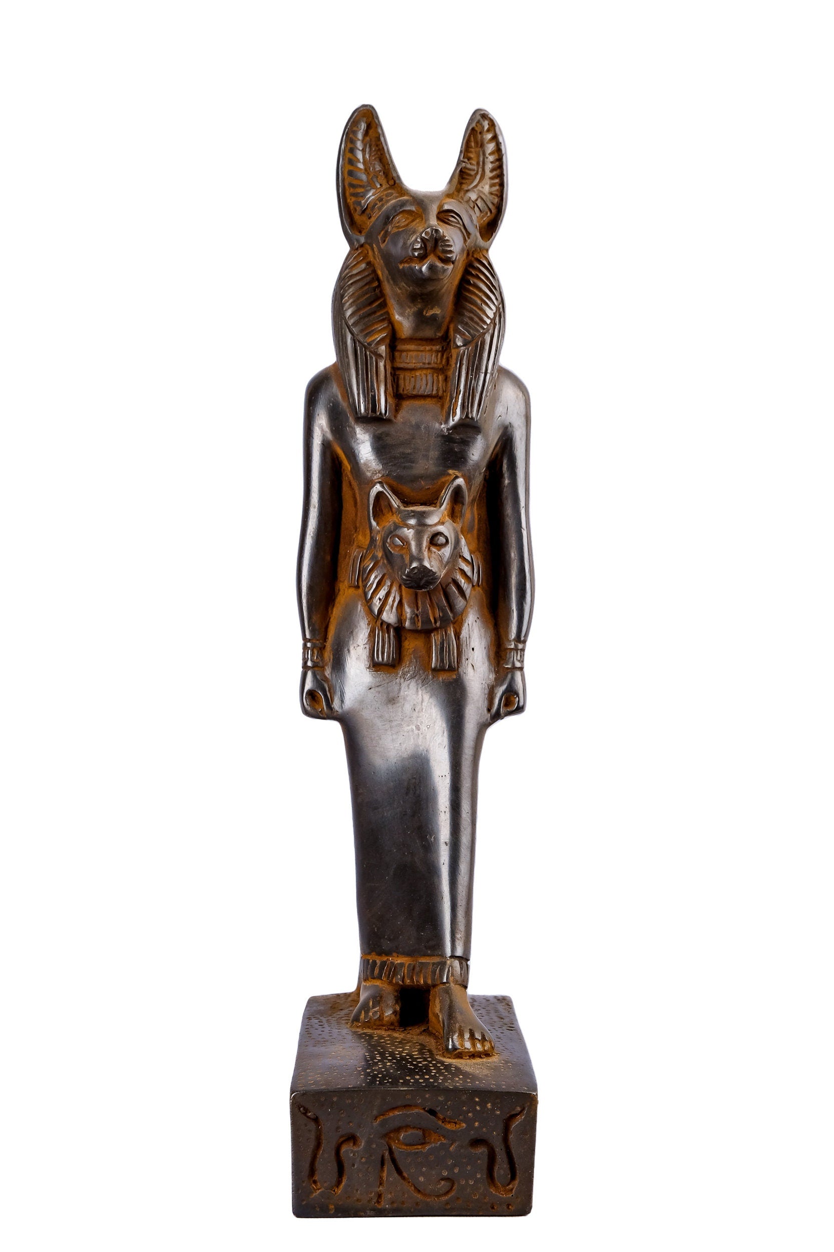 A unique ancient Egyptian statue of Anubis Jackal God of afterlife and mummification, with front a head of Sekhmet unique - made in Egypt