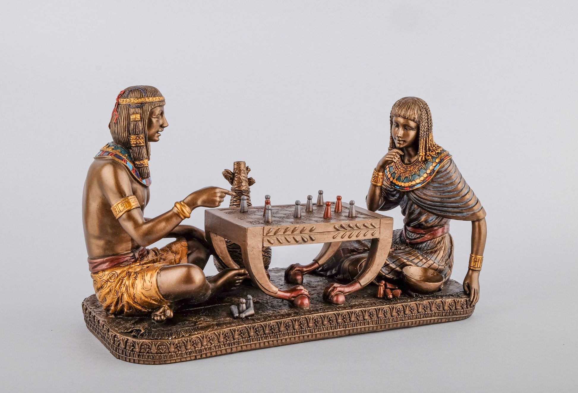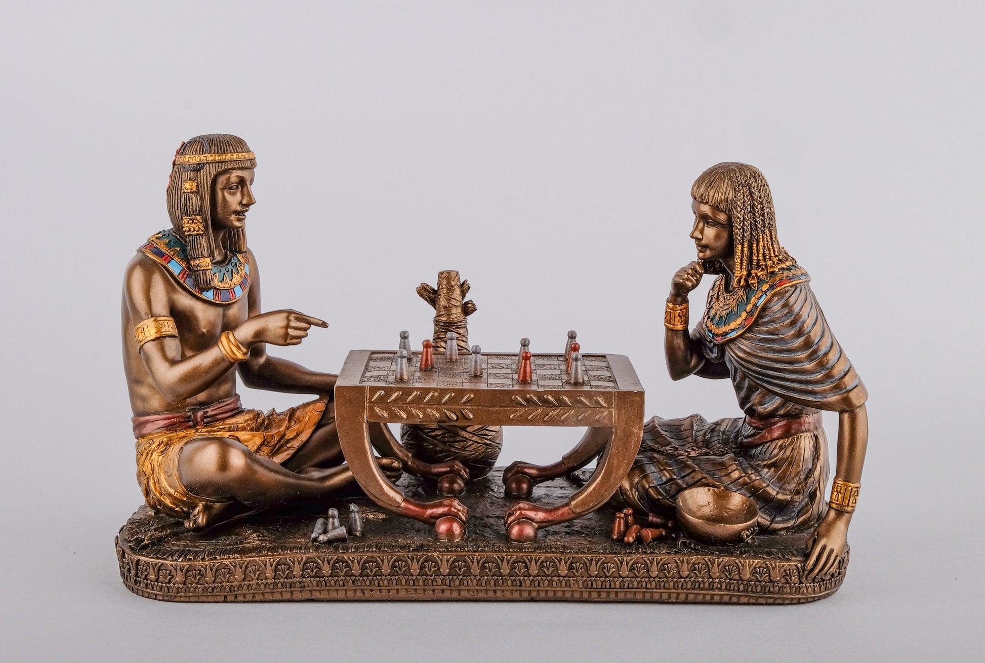 Amazing Maket for ancient pharaohs playing the famous Egyptian game Senet or Senat Sculpture Figure Cold cast Bronze & Resin made in Egypt