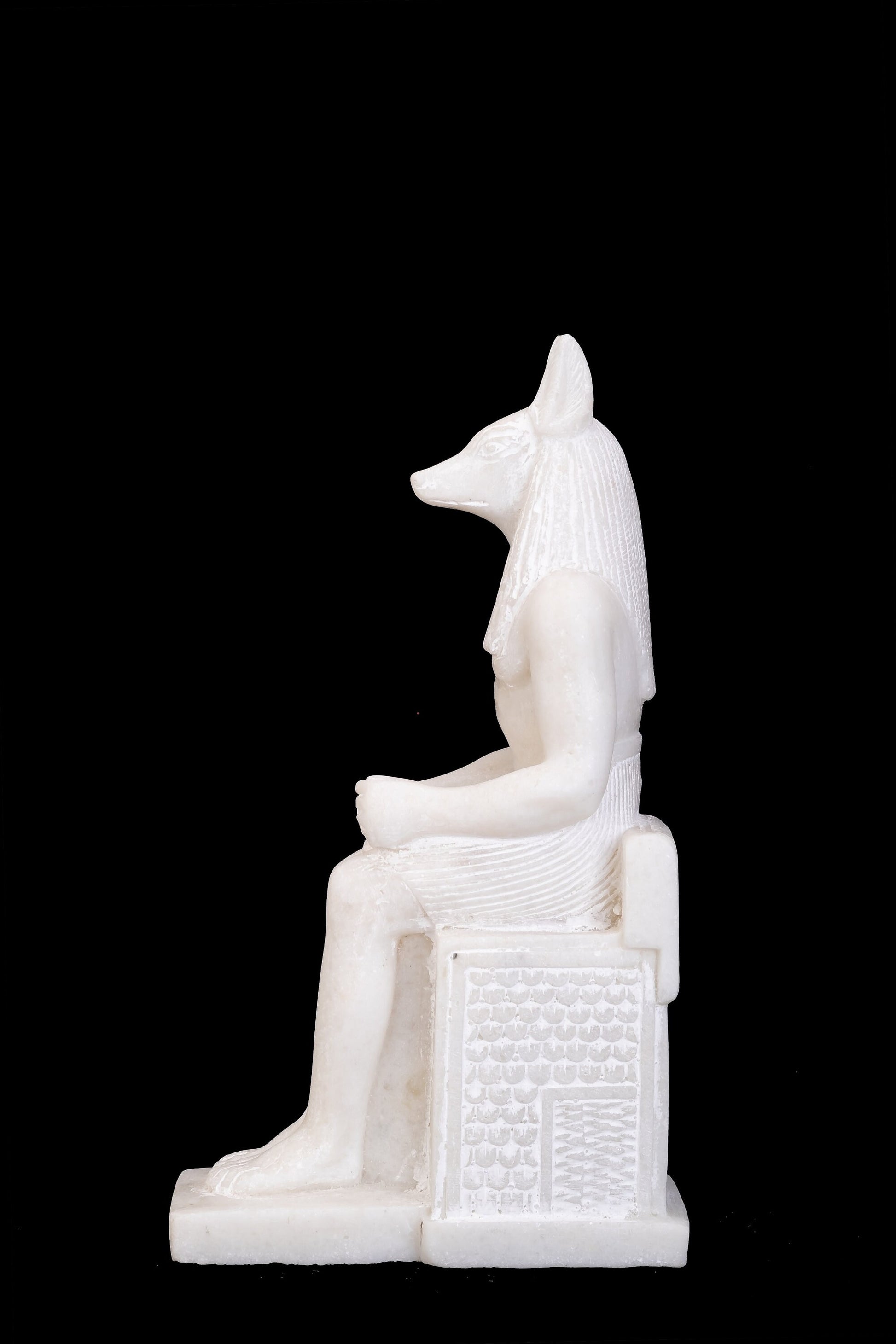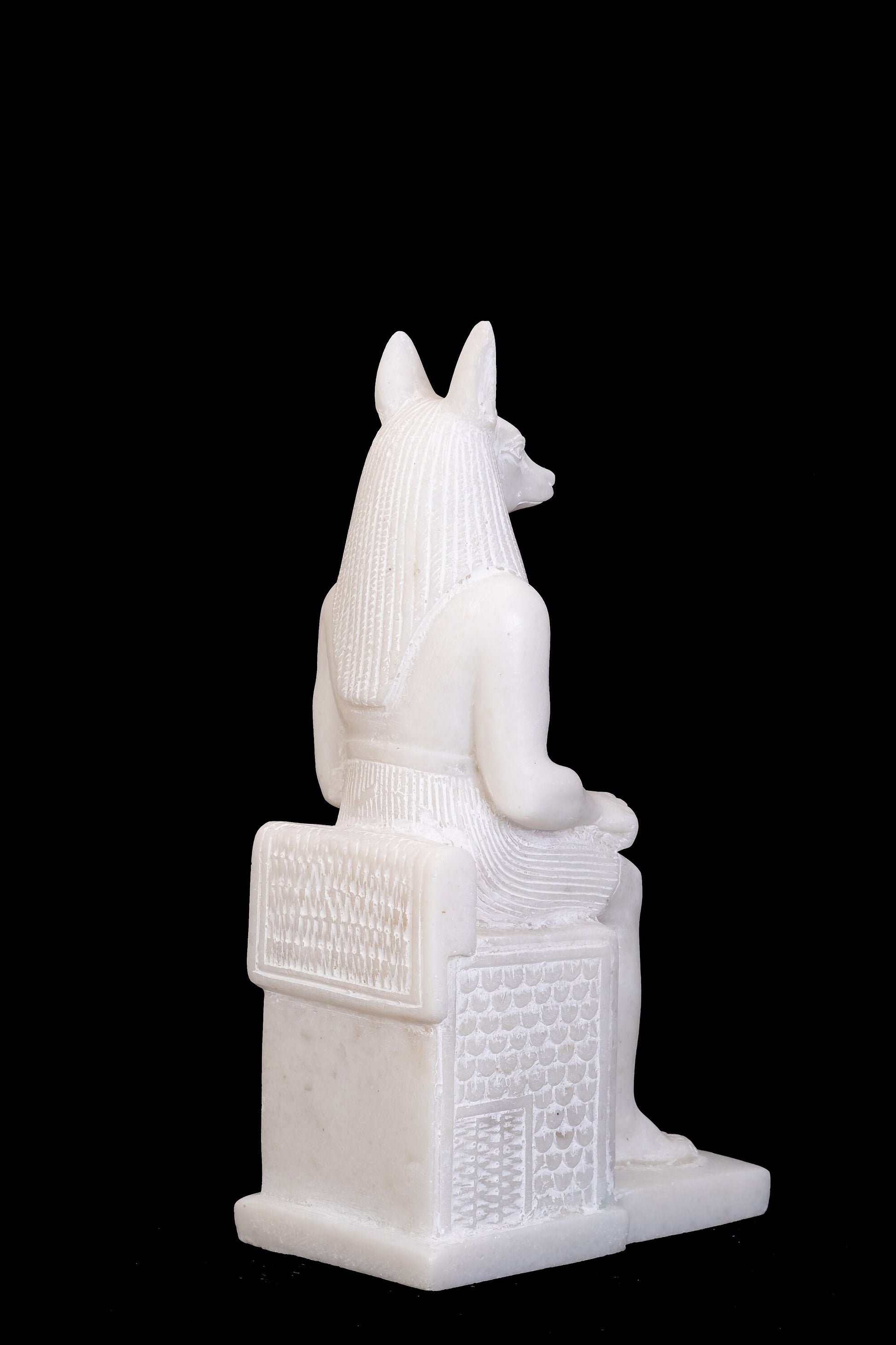 Amazing statue of the Jackal Anubis sitting on a throne Replica Altar statue handmade in Egypt from Alabaster stone - heavy Masterpiece