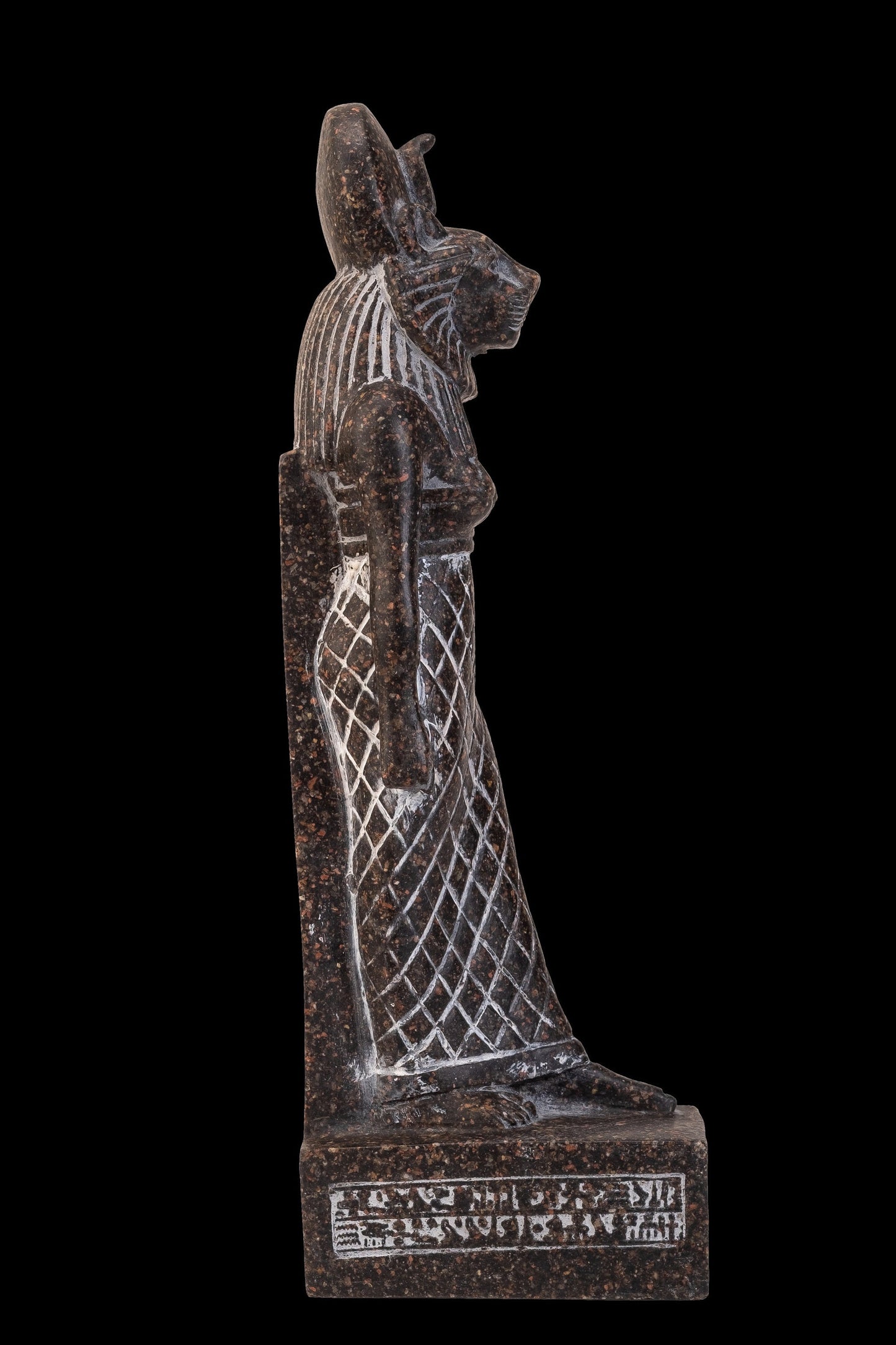 Ancient Egyptian statue of Pharaoh Sekhmet , whose Lioness head with a woman's body has the eye of the sun