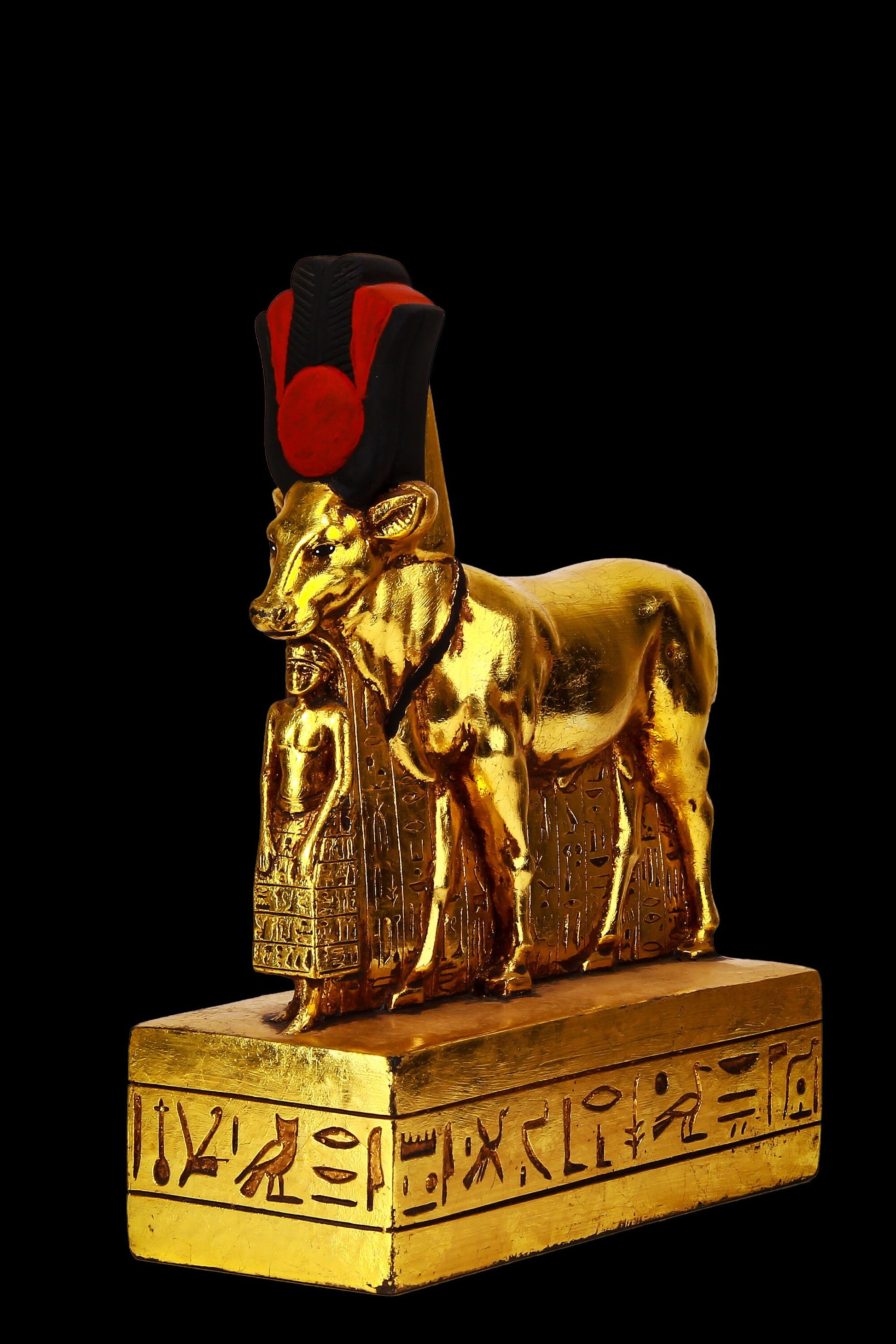 Vintage statue goddess Hathor protecting Psammetic large sculpture heavy stone gold leaf hand painted made in Egypt
